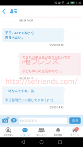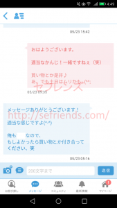 私の場合は、主に「買い物付き合ってくださいw」「肉食べたいですね」みたいなノリなので、下記のようなやりとりになります。