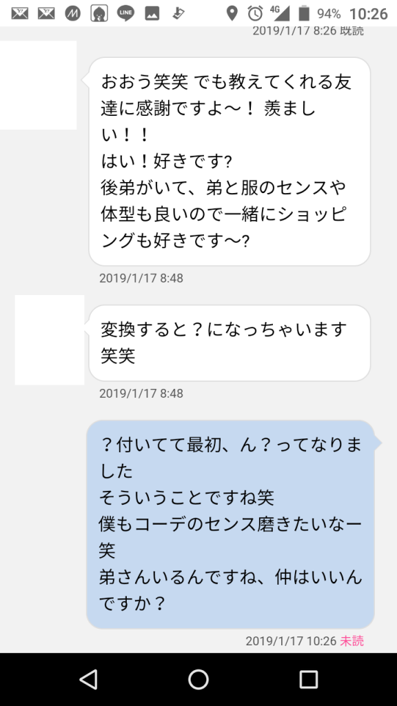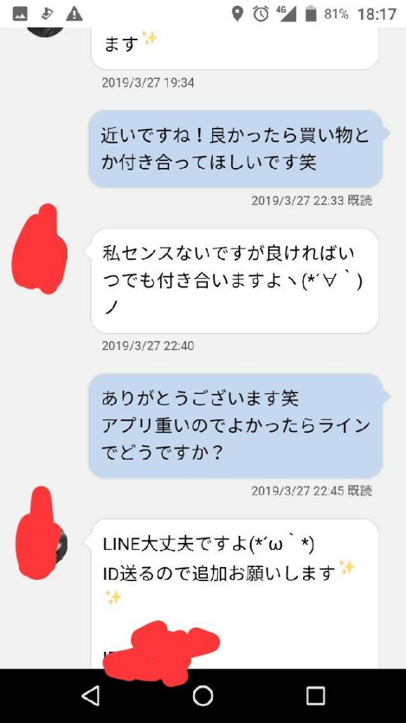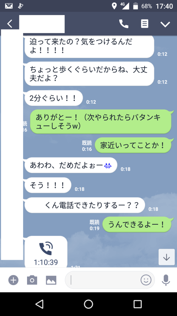 電話では 「どんな目的でアプリやってるの?やるため?」 「会ったとき食ったりしないから安心して?w」 と聞かれてお酒が入っているとはいえ、ラインのやり取りからは想像できないエロさをむき出しにしてきました笑 他には「どんくらい彼女いないの?」など軽い恋愛話や、後は好きな歌手など極普通の話しもしましたね!