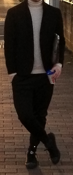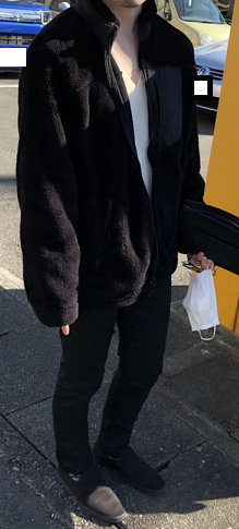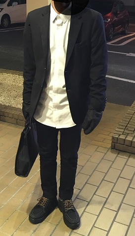 インナーと靴下で白を挿入しているが、基本的に私のコーデは黒が多すぎるので、シルエットやニュアンスだけ真似してください。笑